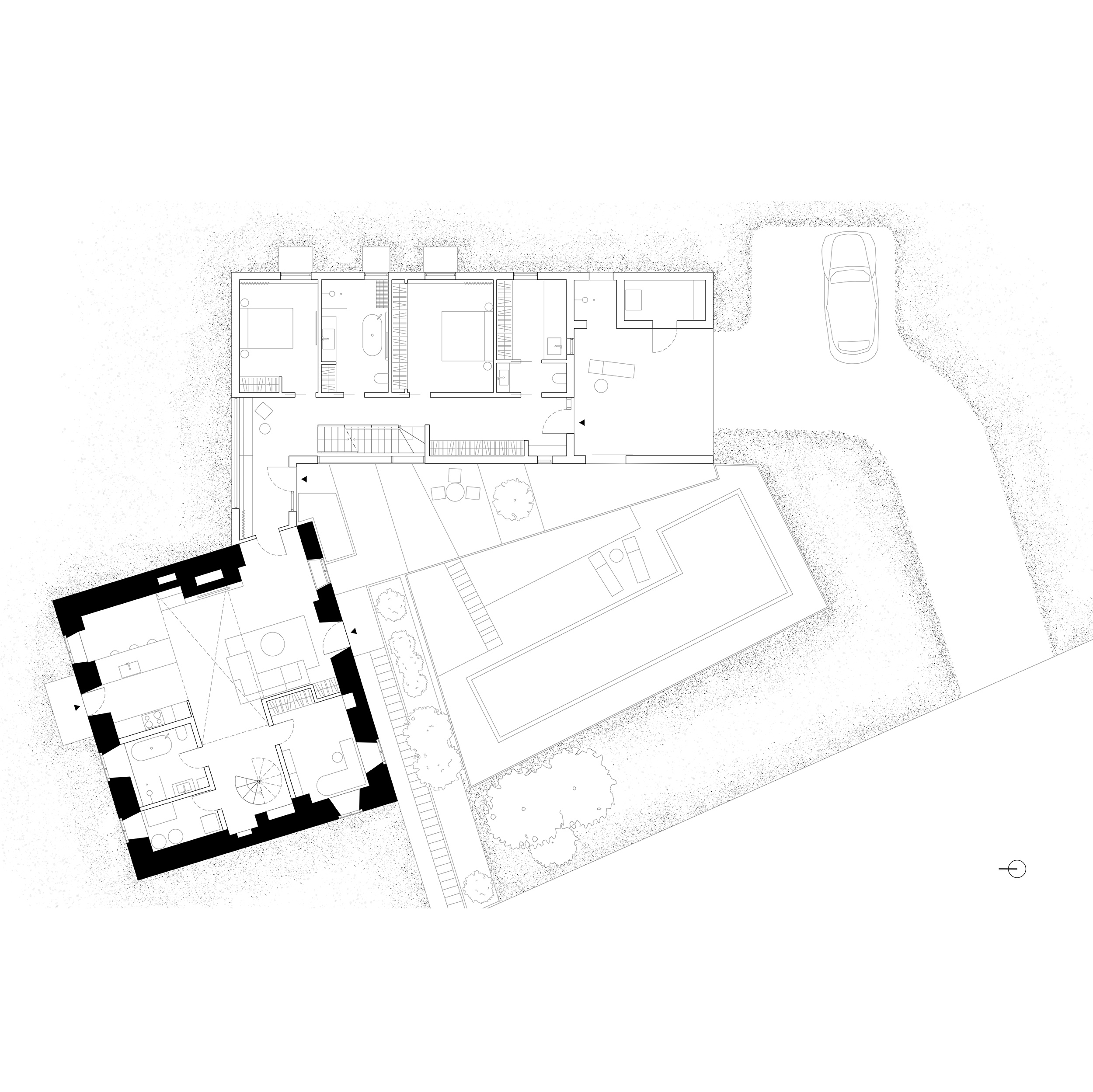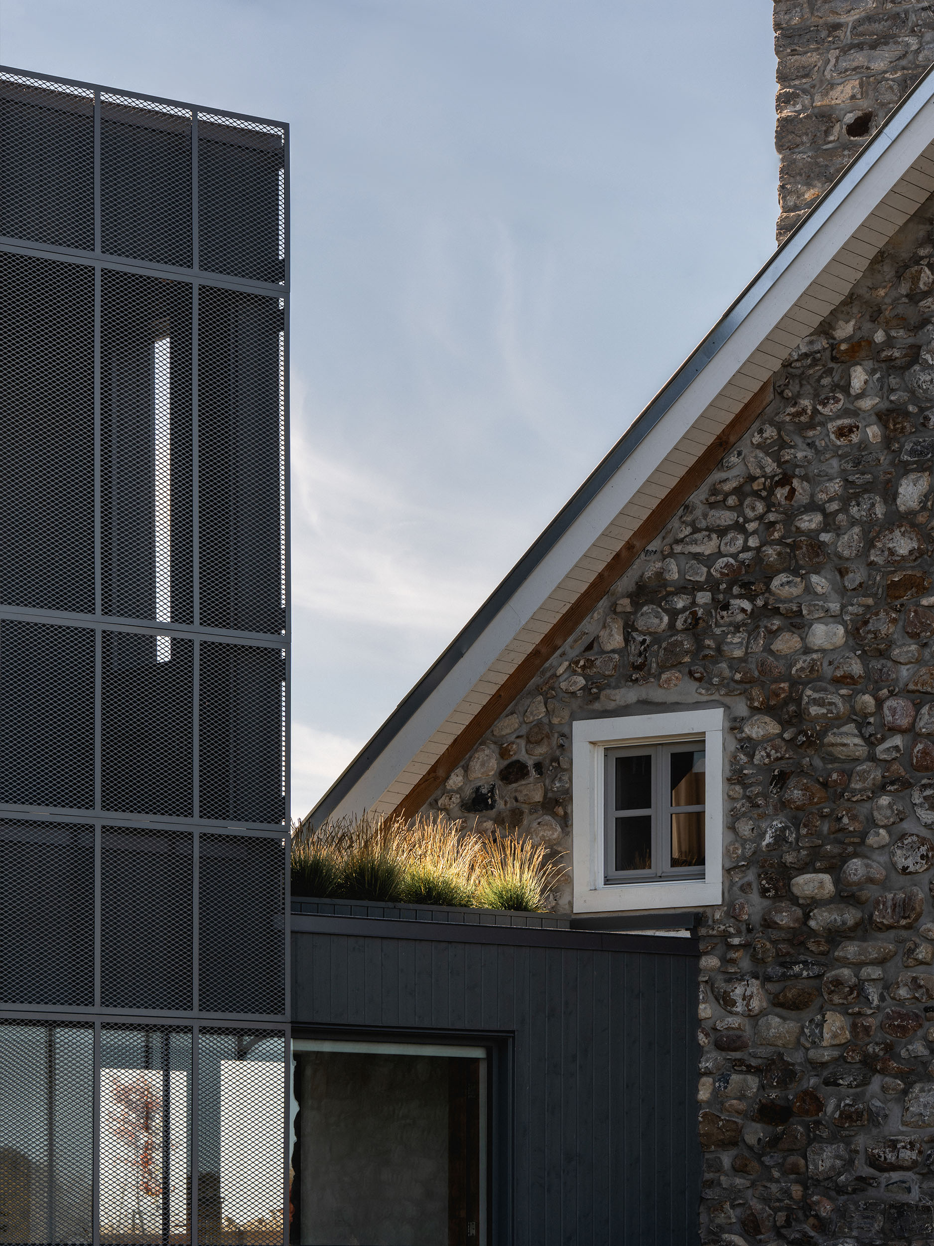 The restoration approach is guided by a desire to preserve the authenticity and spirit of the house, while highlighting its historical legacy and its rootedness in the rural landscape. The restraint of the interventions and the clarity of the form allow the building to be reactivated while maintaining its unique character. The contemporary extension is deliberately set apart, asserting its own identity through a compact form and a restrained architectural language. It provides bright, functional spaces adapted to present-day uses without compromising the integrity of the historic house.